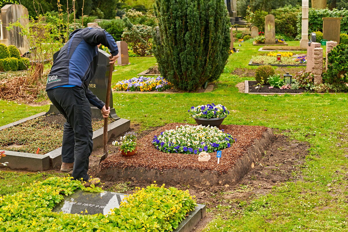 Wir beraten Sie fachgerecht über eine sinnvolle vorübergehende Erstbepflanzung bei Urnenbeisetzung oder Erdbestattungen, und besprechen gerne mit Ihnen wie die Folgeschritte ganz nach Ihren Wünschen aussehen können.
